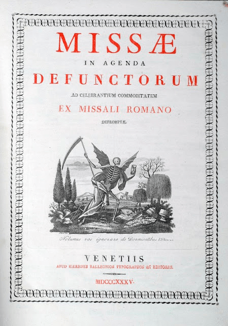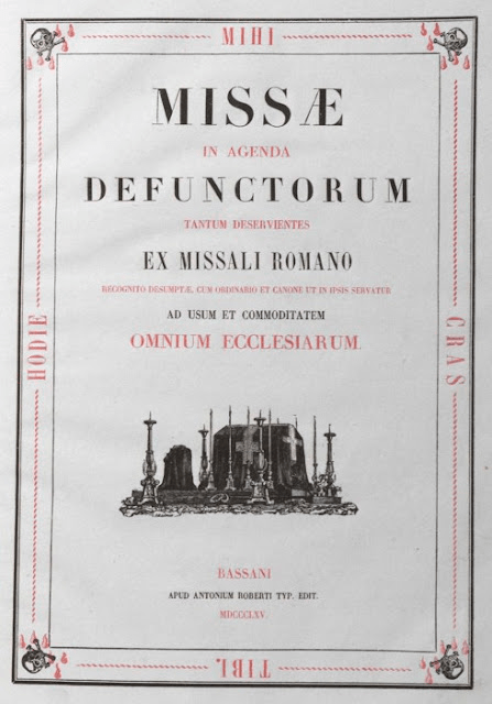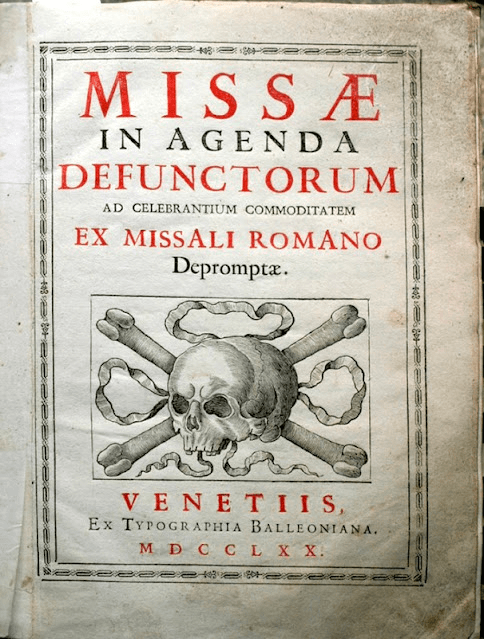 11月在西方教会传统中被称呼为炼灵月。虽然已经过去,但我们可以回顾一下。虽然正式版本的《罗马弥撒经书》是包含为亡者举行亡者弥撒之内容。但是,专门为某一个主题所专门定制之弥撒经书的,是为实际需要制作。通常专用于亡者弥撒之书,封面为黑色,或者封面上印有纪念性的字样。这些弥撒经书是含有一些有趣的纪念词。这些事可以在17-19世纪的亡者弥撒之书中可以找到。但是,比较遗憾的是在19世纪后半叶,这些东西被淘汰了,取而代之的则是更加经典、规范取自罗马弥撒经书的插图。但是,在这里,我们可以欣赏一些之前有特殊的封面: