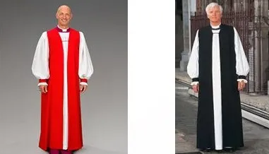 白色主教袍是一件类似于白长袍的白色衣服,穿在仅供主教使用的长袍外,由松散的织物制成,长及脚踝,并在手腕处用红色或黑色布带收拢在手腕处,袖子上有荷叶边。白色主教袍连同无袖袍是圣公会主教的传统法衣,自 16 世纪以来几乎没有变化。无袖袍是中世纪骑马斗篷的演变。它的颜色为黑色或红色。它穿在白色主教袍和黑色长袍上,仅由圣公会主教作为其正式礼服的一部分穿着。
