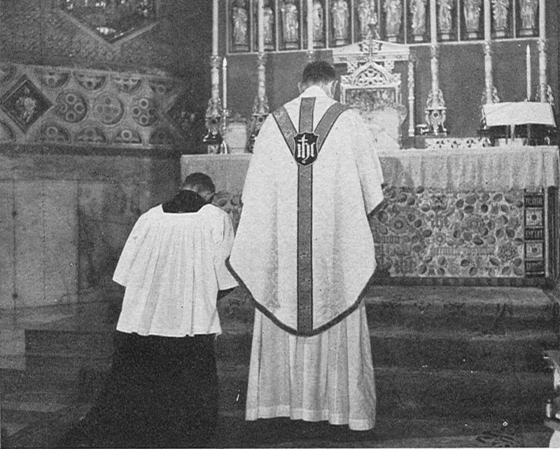 然后轮到辅祭,他仍然为会众说话,辅祭做同样的忏悔,司铎用同样的祈祷回答。在随后的赦罪仪式上,司铎和辅祭都画十字,因为只有通过十字架的力量,我们的罪才能得到宽恕。
