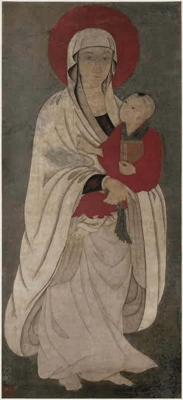 这幅西安府圣母由美国菲尔德博物馆馆长于20世纪初期从西安某显赫家族中购得,其时已在该家族手中传了五六代人。有一些学者认为该圣母圣像的造型是受到了《罗马人民的救援》的影响。