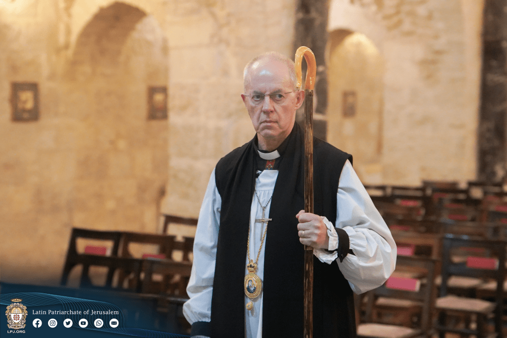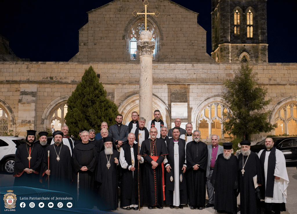 2023 年 10 月 20 日星期五,在耶路撒冷圣公会圣乔治座堂,耶路撒冷拉丁礼宗主教皮尔巴蒂斯塔·皮扎巴拉 (Pierbattista Pizzaballa) 枢机和主教总代理(General Vicar)威廉·索马利 (William Shomali) 蒙席参加了圣公会组织的和平祈祷,由坎特伯雷大主教贾斯汀·韦尔比主教和耶路撒冷圣公会教区大主教霍萨姆·纳乌姆主教主持。集会中包括教会的宗主教、主教、几位司铎以及信徒。