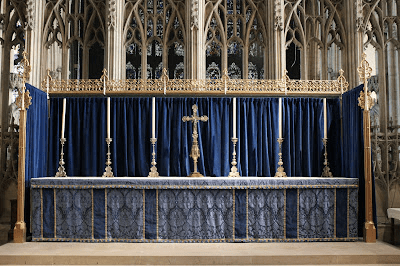 考虑到在将临期中使用蓝色的历史证据,而且还有趣地注意到,本质上,最初在非洲大陆使用的大部分紫色实际上都是蓝色,令人着迷的是,我们圣公会能够恢复这个美丽的做法。毕竟,所有的实践和用途都源于历史上每一个礼仪的传统和重复。自维多利亚时代以来,将临期礼仪蓝色的使用一直在普世圣公宗中传播,著名的例子是威斯敏斯特教堂、其他各种皇家教堂、约克大教堂和其他大教堂、北美的几座教堂,甚至罗马的诸圣堂,自 1897 年以来一直在使用。如今,在英国圣公会,蓝色是将临期的官方颜色。