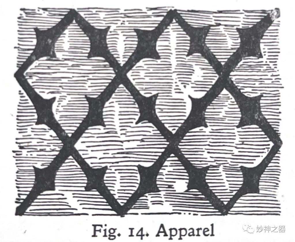 无论是“APPARELS”还是“ORPHREYS”,都可以说是从亚麻刺绣(segmenta)演变而来的,它是一种刺绣饰品,呈长方形或圆形,编织或缝制在罗马帝国穿着华丽的人的亚麻外衣上。