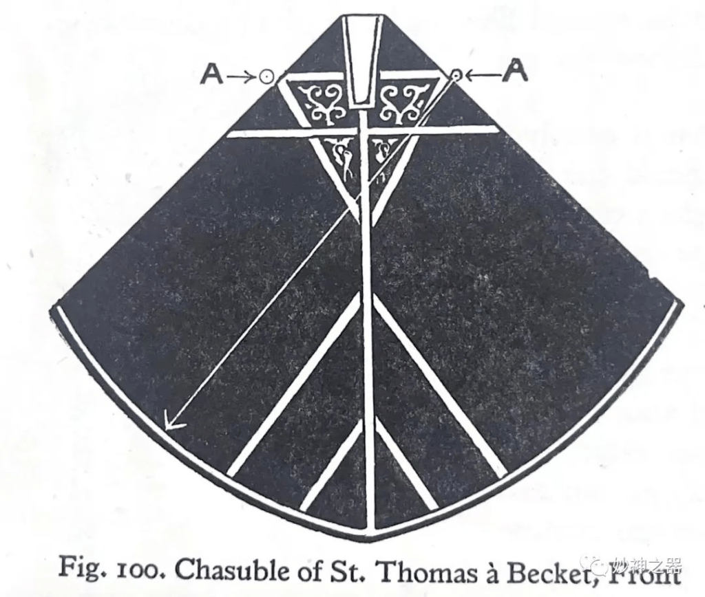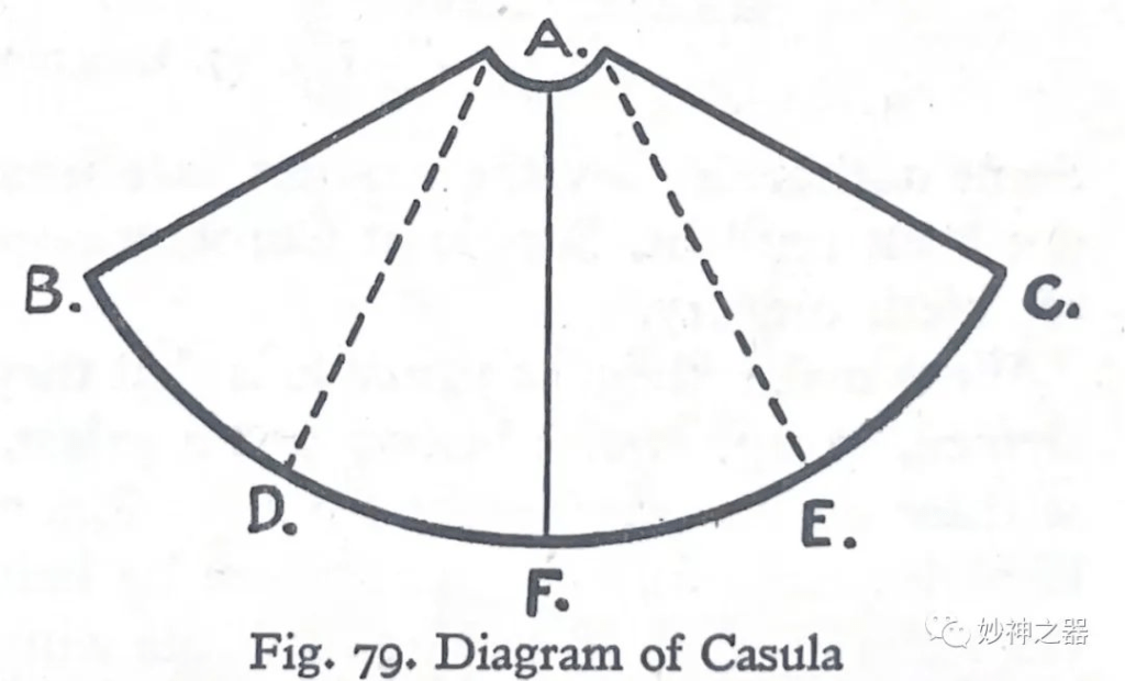 一份可追溯到九世纪的手抄本,对CASULA的形状进行了描述。抄本里提到它是“整块布料制作而成”,但这并不意味着这件斗篷没有接缝。若布料不够宽,就将布料的边缝起来组成一块。