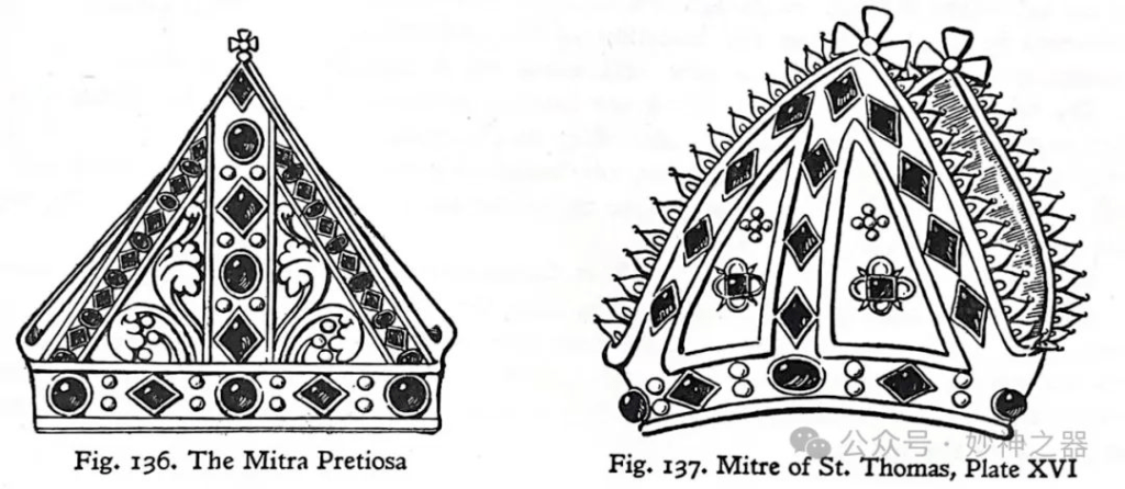 一个合理的例子,是扉页十六所示的第15世纪的圣托马斯所佩戴牧冠,其比例更令人满意。