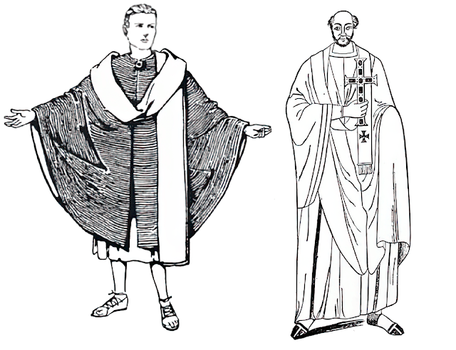 祭服起源于罗马平民服饰,在古基督教时代,祭服仅与将最好的衣服留给神圣礼仪的概念有关。起初,神职人员和非神职人员(基督教徒或其他人士)所穿的祭服和礼服几乎没有区别。阿奇代尔·金 (Archdale King) 指出,在圣大格里高利时代,即公元 6 世纪末,所有受人尊敬的公民都穿着我们现在认为是教会的服装。