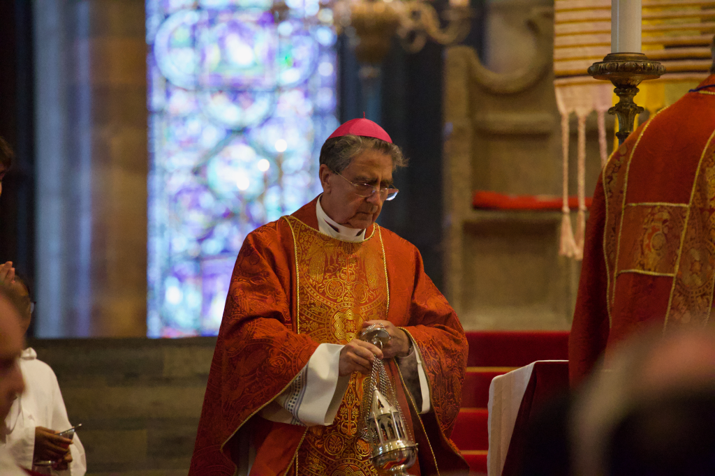 2025年7月7日,圣座大使米格尔·莫里·布恩迪亚大主教在坎特伯雷大教堂举行弥撒期间向祭坛上焚香。